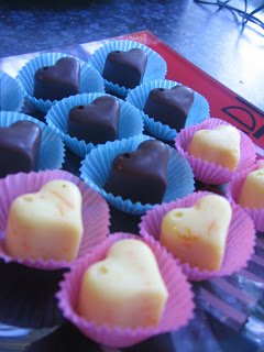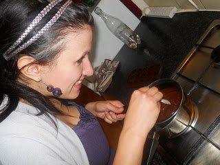 Uj hobbink: a bonbonkeszites. Roppant egyszeru, csak egy szilikonos bonbonkeszito-forma, sok-sok otlet es sok-sok csoki kell hozza.:) Felolvasztjuk az etcsokit 1 evokanal etolajjal, fuszerezzuk fahejjal/chilivel es belekanalazzuk a formaba. Ha picit kihult, bedobjuk a hutobe, es szuk 1 ora mulva mar eszegetjuk is sajat bonbonjainkat:)
