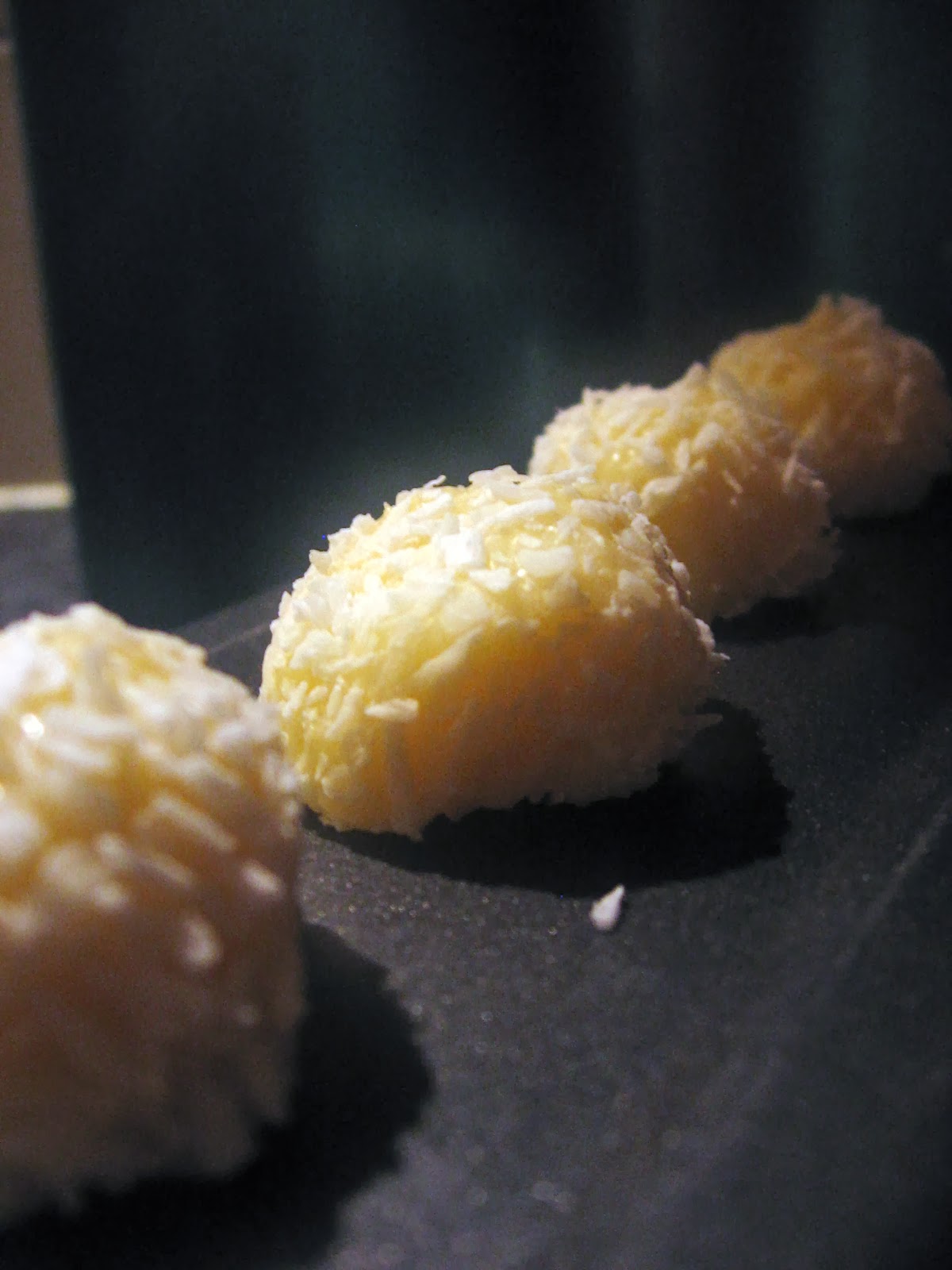 4. Tehat ha kihult, golyokat formazunk belole, a kozepukbe 1-1 szem mandulat nyomunk, meghempergetjuk kokuszreszelekben es mehetnek a fagyasztoba.