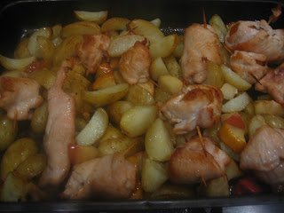 Én ugyan egy falatot sem ettem belőle-valahogy elfelejtettem megkóstolni, de a hús állítólag finom volt. Az almás krumpli köret annyira nem nyerte el a Picim tetszését. Azért csak álljon itt a recept-szokásomhoz híven.