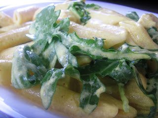 5.A kifőtt tésztával összeforgatjuk és végül a rucolát is hozzáadjuk.