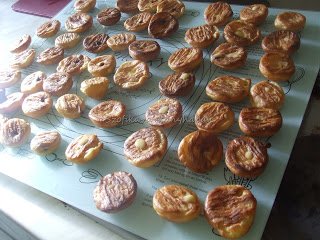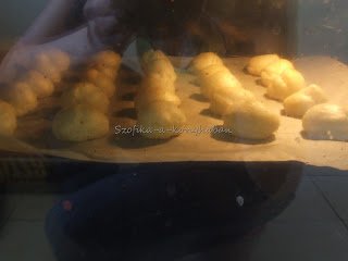 Ma reggel az alábbi recept alapján megsütöttem 150 db profiterolt. A receptben található mennyiségek kétszeresét használtam, habzsákba töltöttem a masszát és úgy nyomtam ki sütőpapírra macaroon-méretű ( 50 forintos/2 fontos) nagyságú köröket. Egy gáztepsire 25 db ment rá, szóval 6 adagban sültek ki. 12-15 perc alatt sült meg egy adag. Az első adagnak 12 perc után adtam 1-1 tűszúrást, hogy a gőz távozzon a gömbökből,majd még 2 percre visszatettem őket. Katasztrofálisan összeestek és laposak lettek,így a többi 5 tepsinél már nem szúrtam ki őket.