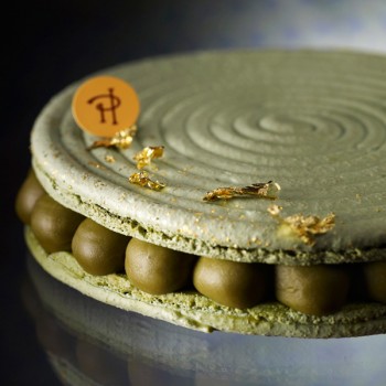 “Dépaysé”:matca zöld teás ízesítésű krémmel és azukival ( japán bab) töltött macarooncsoda,limehéjjal, friss gyömbérrel és rizsecettel ízesítve: 6.90 EUR