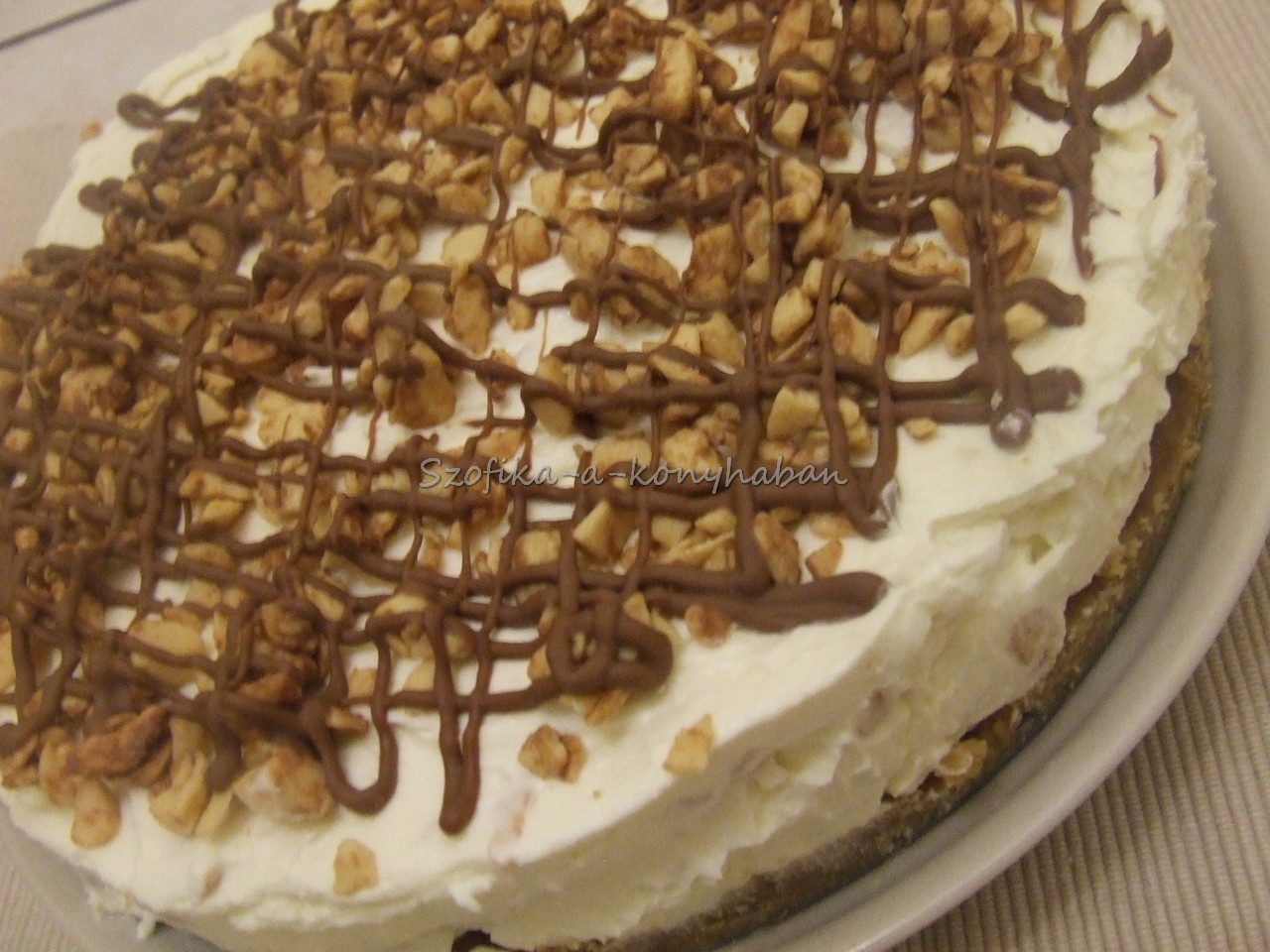 8. A masszát dolgozzuk el a kekszes alap tetején, szórjuk meg a maradék csokis törökmézzel.