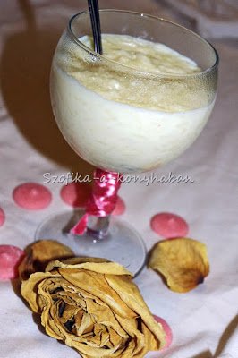5. Mikor kész, hozzákeverjük a rózsavizet és melegen vagy hidegen, rózsamámorban úszva elfogyasztjuk.