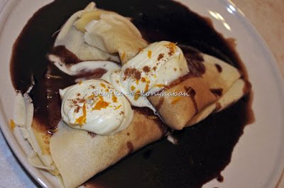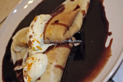 5. Meglocsoljuk a csokiszósszal, tejszínhabbal tálaljuk.