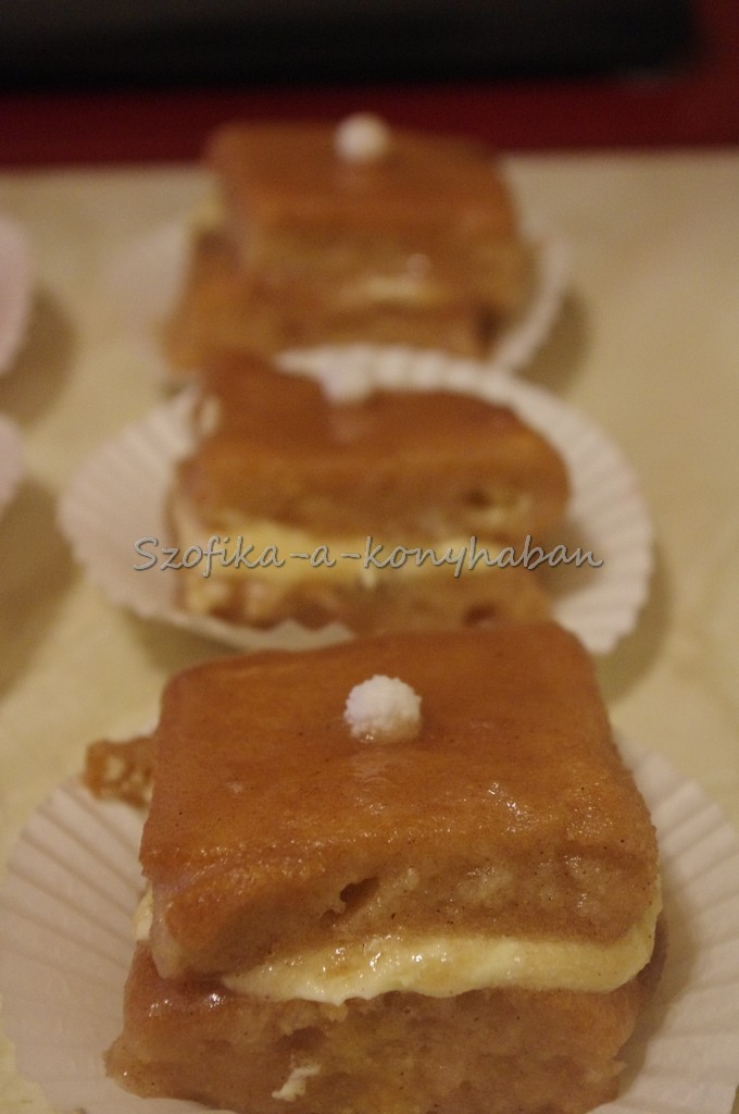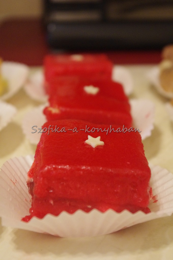 Be a hűtőbe, hogy megkössön kicsit a krém. Ezután négyzet vagy rombuszalakúra vágjuk és jön a bevonás.
