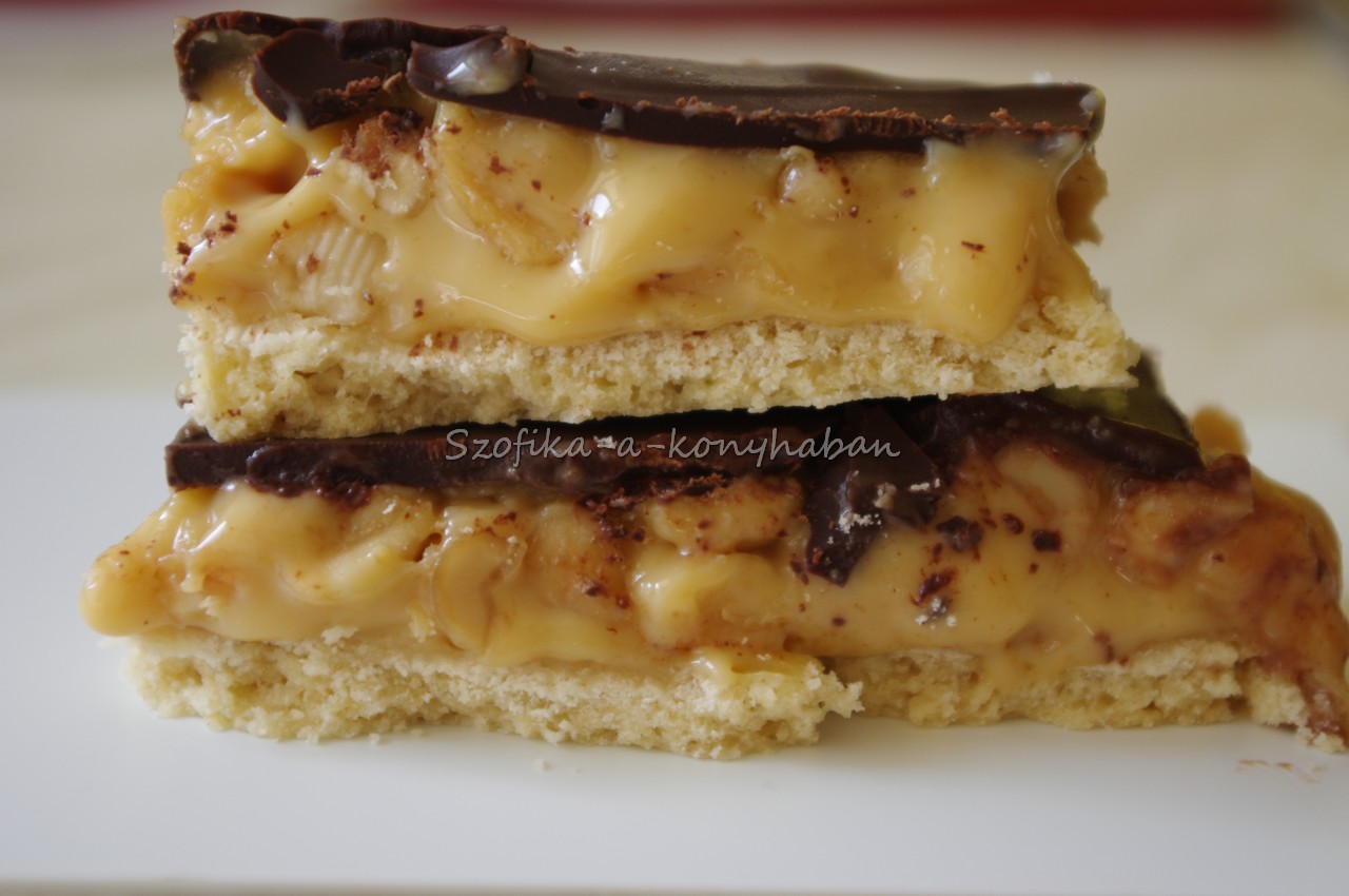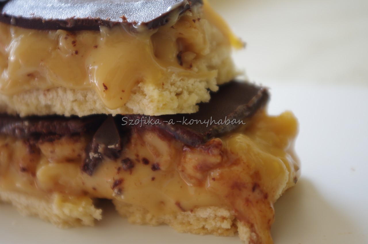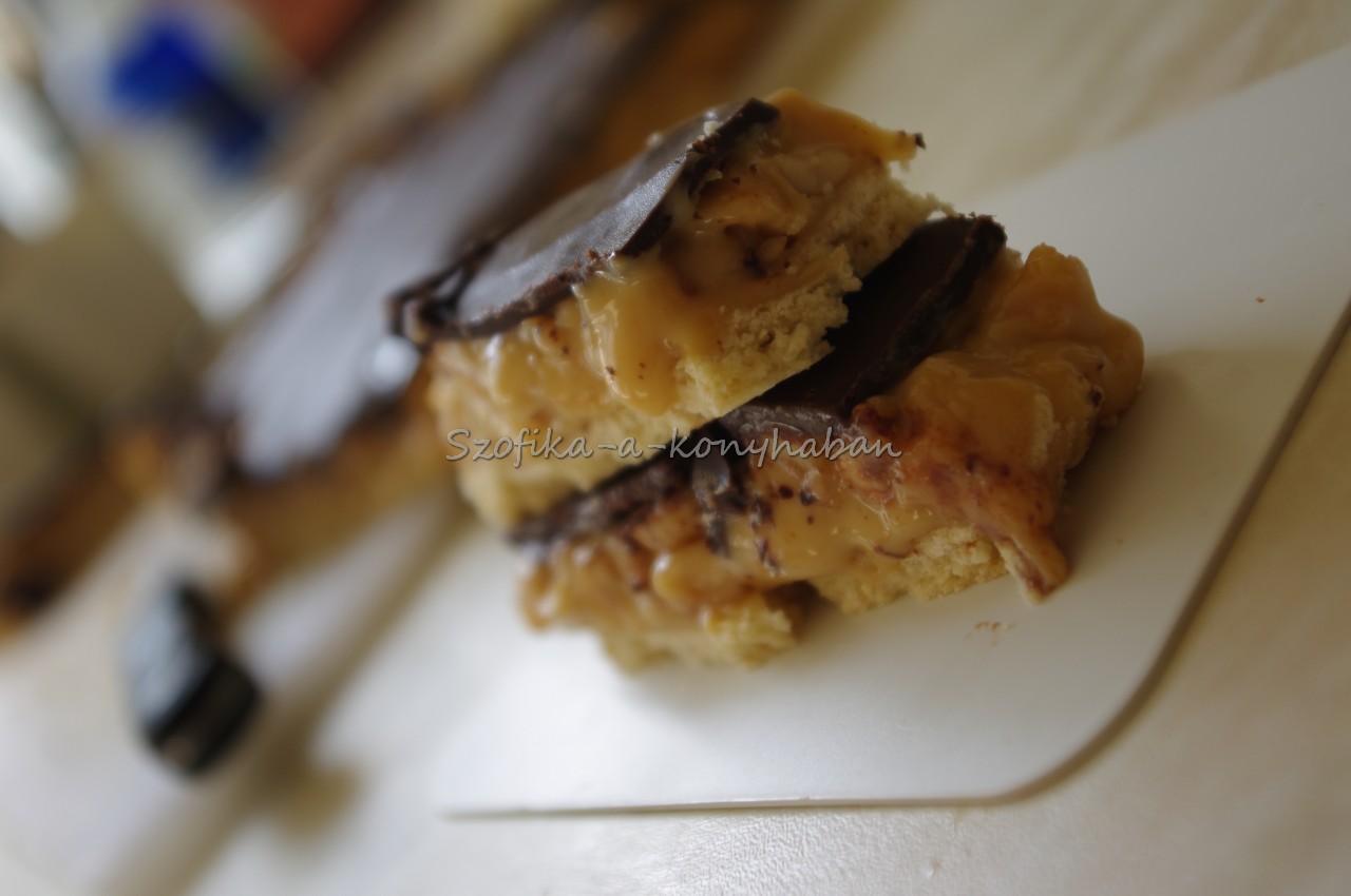 Akárhányszor Flóránál járok, kalandozásom a blogján mindig a Snickers szeletnél zárul. Gyönyörködöm a fotóban és csorgatom a nyálam, hogy azé’ ez má’ milyen finom lehet, na. Tegnap aztán úgy döntöttem, elég a nyálcsorgatásból, eljött az én időm.A sűrített tejjel ugyan melléfogtam, de annyira akartam ezt a sütit, hogy sikerült feljavítanom. Itt van, teljes valójában, autentikus Snickers csoki íz, de nekem annál sokkal, de sokkal finomabb!Drága Flóra, köszönöm ezt az élményt 🙂