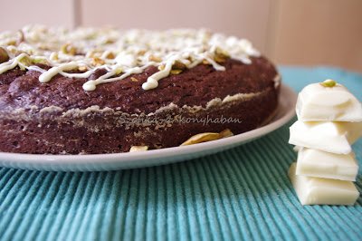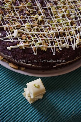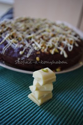 6. Ha kész, szórjuk meg a tetejét a maradék pisztáciával és olvasztott fehércsokival díszítsük.