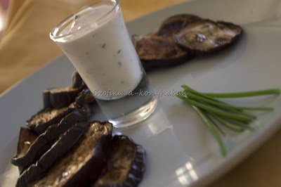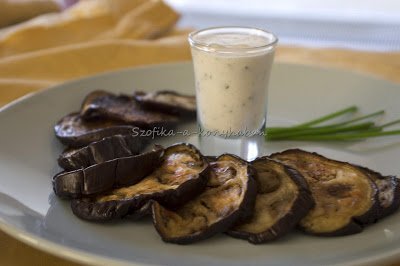 Grillezett padlizsánkarikák snidlinges joghurtöntettel: