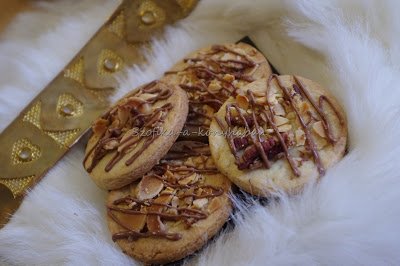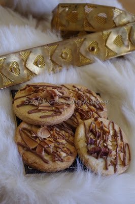 6. A lehűtött tésztakorongokat megszórjuk a pirított mandula-pekándió keverékkel és 180 fokra előmelegített sütőben kb. 10-15 percig sütjük.