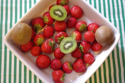 2. A kiwit meghámozzuk, megmossuk és apró kockákra vágjuk. A középső, fehér részét kivágjuk.