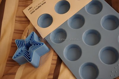 A csillag alakú szaggató mellé egy színben harmonizáló, babakék szilikonos mini muffinformát is beszereztem ma