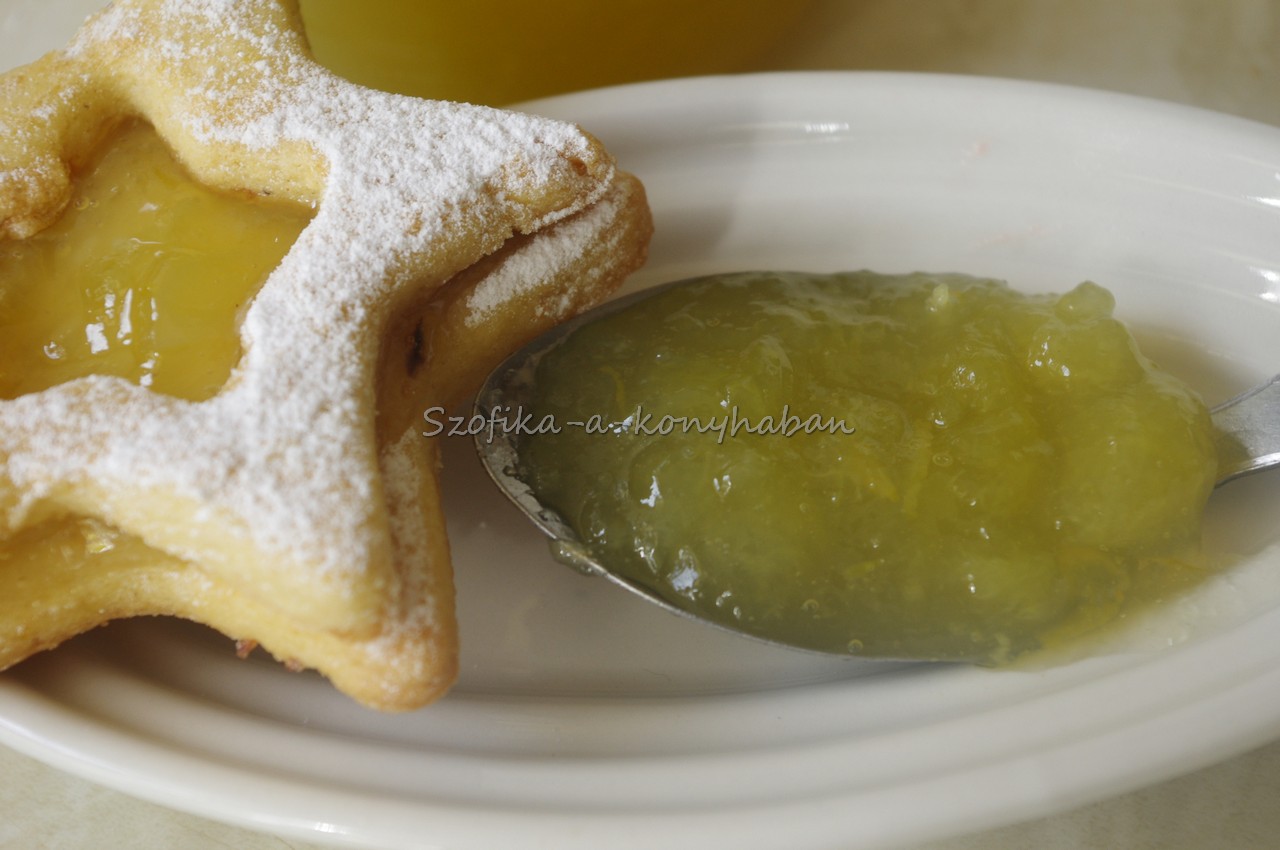 Gyömbéres sárgadinnyelekvár. Valamint az az 5 db-os, csillag alakú szaggatókészlet, amire ma sikerült szert tennem. Azt gondoltam, a linzer hamar kész, pikk-pakk megvan.Hát nem így lett. Majd 2 órát szöszmötöltem vele, szaggatni nagy csillagot, kiscsillagot, töltögetni, porcukorral megszórni. Aztán újabb 1 órán át a lakás minden pontján próbáltam lefotózni,épp csak a fürdőszobában nem. Sem az erkélyen, sem a szobában, sem a konyhában nem sikerült. Pedig délután 2 óra volt, mondhatni, ideális fényviszonyok voltak-kellett volna, hogy legyenek. A 70 képből mindössze ez az egy lett használható, nekem ugyan ez sem tetszik, de valamit fel kellett tenni. Viszont a linzer isteni lett. A linzer-receptekben nem győzik hangsúlyozni, hogy lezárt fémdobozban akár 1 hétig!!!is eláll, na de kérem, hol nem esznek meg egy adag linzert egy hét alatt?Nálunk nem lesz fémdoboz, az biztos!!