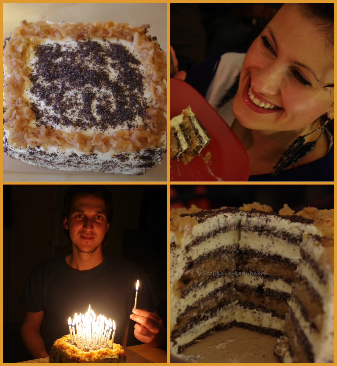 Tegnap volt az én drága Z-m szülinapja. Valami nagyon-nagyon különleges tortát szerettem volna neki. A tavalyi katasztrofális szülinapi Croquembouche után azonban akkor megfogadtam: idén valami egyszerűt!Könyörgött a máktortáért,mert az a kedvence, de úgy voltam vele, nehogy már a szülinapjára is egy olyan tortát kapjon, amit hétköznap,ünnep nélkül is megsütök…Amikor otthon voltunk és megláttam Kecskeméten valamelyik cukrászdában az Ország tortáját, na akkor tudtam, hogy EZ lesz idén Z szülinapi tortája. Nem csalódtam!És nem csak a tortában nem, most kivételesen magamban sem 🙂 Hatalmas meló volt, majd 4 órám ment rá, de megérte!!Mind a kinézetével,mind az ízével elégedett vagyok!Nyilván vannak ennél szebb Országtorták,de Z-nek biztos ez a legszebb 🙂