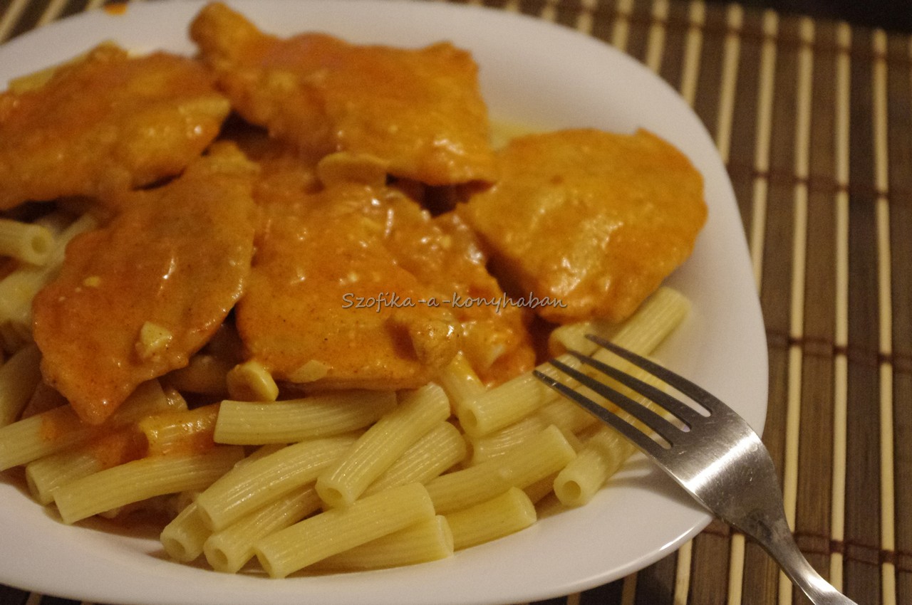 Néha nagyon nehezen jön az ihlet. Ha megfeszülök, se jut eszembe semmi, amit főzhetnék.Ilyenkor kétféle végkimenetele van a dolognak: a sok kínlódás egy ehetetlen terméket eredményez, ami szószerint a kukában végzi vagy pedig egy ultrafinom kaját, amit aztán felveszek a “hetente muszáj elkészíteni” listára.Utóbbi kategóriába esett a mai ebéd, ami annyira de annyira isteni lett, hogy az imént ( éjfélkor) hazatérve a munkából szemrebbenés nélkül megettem belőle egy ugyanakkora púpos tányérral,mint délben. Ennyit a gasztroblogger fogyókúrájáról, halva született ötlet volt…
