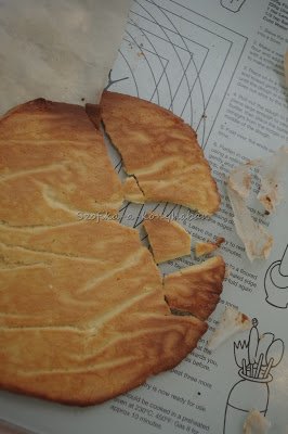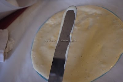 Tipp: ha túl sokáig keverjük a masszát és túl sokáig kenegetjük kör alakúra, összeesik és vékony lesz a tészta, úgy járunk mint én: pár perc alatt megég a széle.