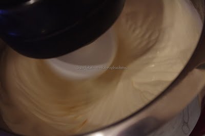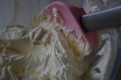 A szobahőmérsékletű, puha vajat porcukorral jól kihabosítjuk és félretesszük.