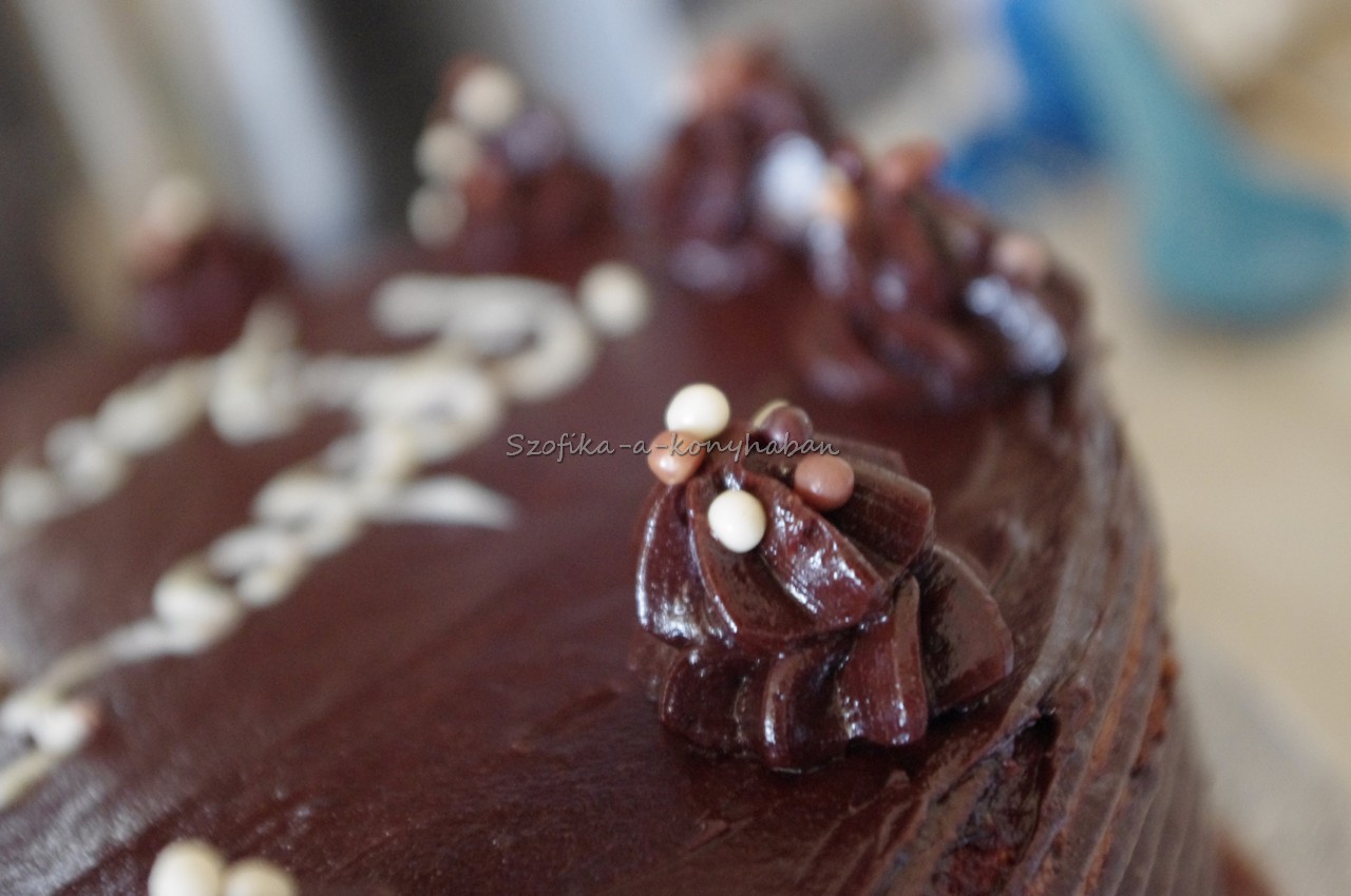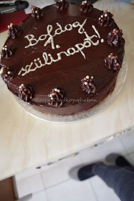 A mai napom ennek a csokitortának a készítésével telt. Rendelésre készítettem, 1. szülinapra. Az Anyuka kifejezett kérése volt, hogy párizsi krémmel legyen töltve a torta. Még szerencse, hogy 2 héttel ezelőtt, mikor Nyammm Zsófi barátnémmal részt vettünk a Miele Sütőakadémia Aprósüteményes kurzusán, a párizsi krém rejtelmeibe is bevezetett minket Vilmos.