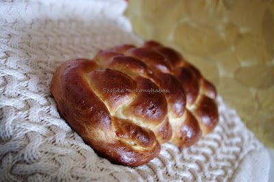 This bread is a special festive bread eaten at Easter time in Hungary. Kind of sweet bread, eaten with the eggs and cooked ham or just simply with some butter / jam/ honey for breakfast. Takes time but it is worth making it.