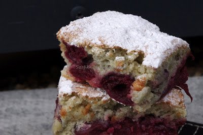 Hiába, a piskóta még mindig és örökké nyerő. Most például meggyel. Nem szeretem a porcukorral befejezett süteményeket, de ez porcukorral megszórva verhetetlen. Félóra alatt kész.Az elfogyasztásához annyi sem kell 🙂