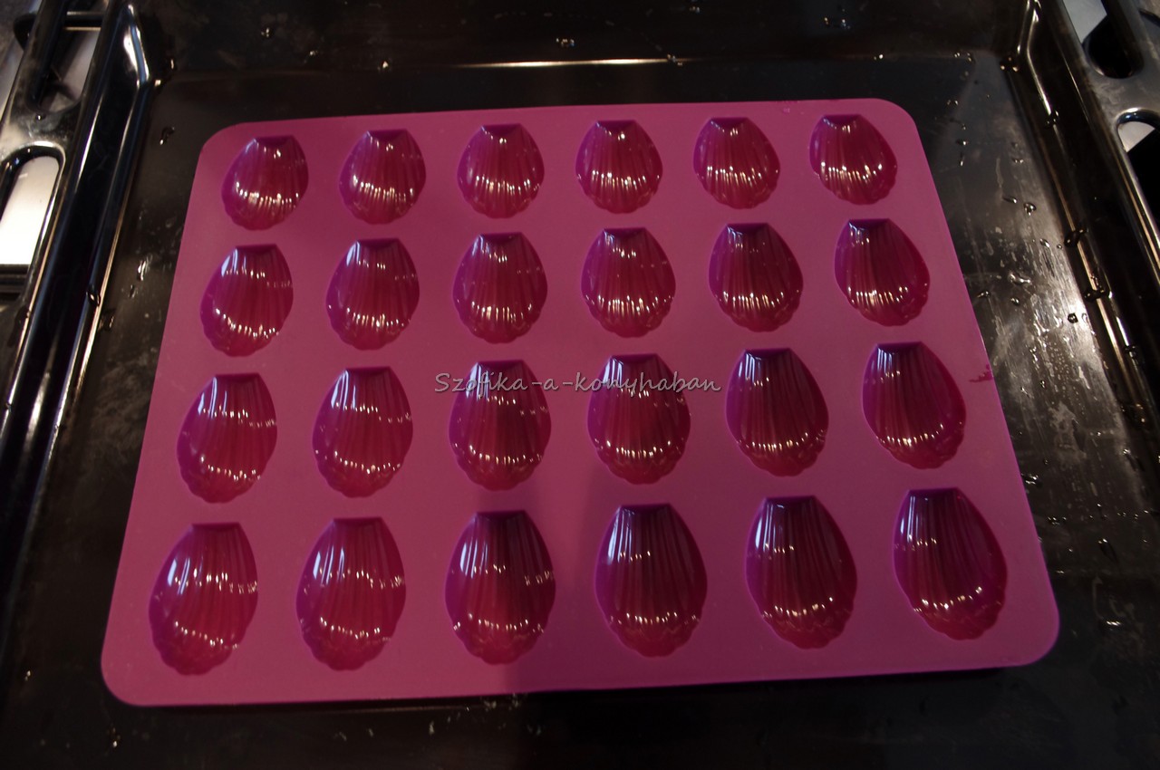 5. A masszát a madeleine sütő mélyedéseibe kanalazzuk ( csak félig legyenek) és 170 fokra előmelegített sütőben aranybarnára sütjük őket. ( Kb. 20 perc)