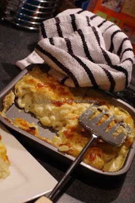 4. Tegyük át egy tepsibe vagy tűzálló tálba, szórjuk meg bőven reszelt sajttal ( parmezánnal vagy cheddar-ral, de bármilyen sajt megteszi) és 180 fokos sütőben addig süssük,míg rá nem pirul a sajt.