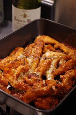 3. Ezután a hússzeleteket átköltöztetjük egy tepsibe, megszórjuk reszelt sajttal és 180 fokos sütőben addig sütjük, míg rá nem pirul a sajt.