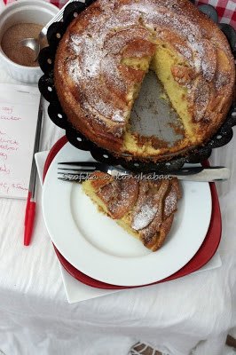 A tésztája finom puha, könnyű, tulajdonképpen egy vajas piskótáról van szó, olyan,mint amilyen anno a Szivárvány tortának a tésztája is volt. Egy gombóc vaníliafagyi vagy egy kis vaníliasodó nekem elfért volna mellette, de Zé erősködött, hogy nem kell emellé semmi, csak jóóóó sok porcukor a tetejére. Gyorsan megvan, olcsó, könnyű, szép, finom, ideális desszert rohanós napokra vagy váratlan vendégeknek.