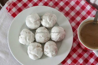 Nagyon fontos, hogy a mázhoz a tojásfehérjét GŐZ FÖLÖTT verjük fel! Nekem ez most nem sikerült,mert nem működik a kézimixerem, az állóval pedig ezt nem lehet kivitelezni.:( Így én két soron mártottam a puszikat a mázba, mert az első után nagyon átlátszóak voltak és még így sem vagyok velük elégedett, de ez egyértelműen amiatt van, hogy nem vízgőz fölött vertem fel a habot! Viszont az íze kárpótol mindenért! Fémdobozban eláll, ajándéknak is szuper lehet, főleg Karácsony táján 🙂