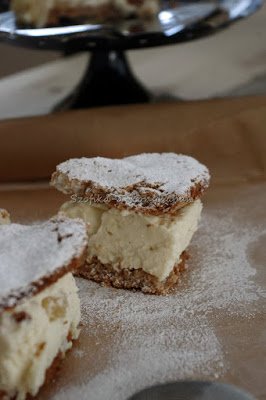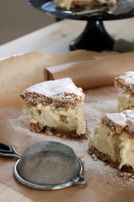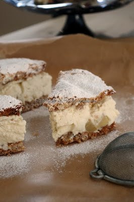 A héten találkoztam egy kedves barátnémmal, akivel 7 éve nem láttuk egymást. Egy olasz étterembe ültünk be. Én épp ebéd után voltam, így csak a desszertekre vetettem egy pillantást. Szimpatikusnak tűnt a körtés ricotta-torta így kértem egy szeletet. Isteni volt. Rögtön nyomultam persze a guglira és kerestem is a receptet.Mint kiderült, klasszikus dél-olasz torta ez. 2 réteg mogyorós habcsóklap közt finom, krémes ricotta töltelék, körtével felturbózva. Kötelező darab!