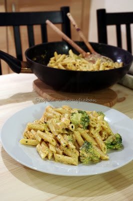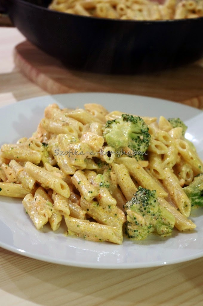 Kedvenc tésztánk Zével, általában akkor készül, mikor olcsóbban jutok lazacfiléhez. Ma pont így történt. Mellesleg ez az egyetlen módja, hogy az uramba beletöltsem a brokkolit, semmilyen más formában nem lelkesedik érte. Ez a kaja viszont csakis brokkolival a jó, semmi mással. A recept már szerepelt korábban, itt.