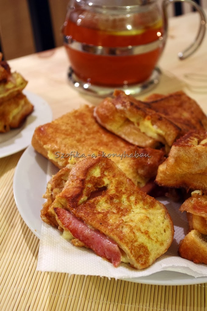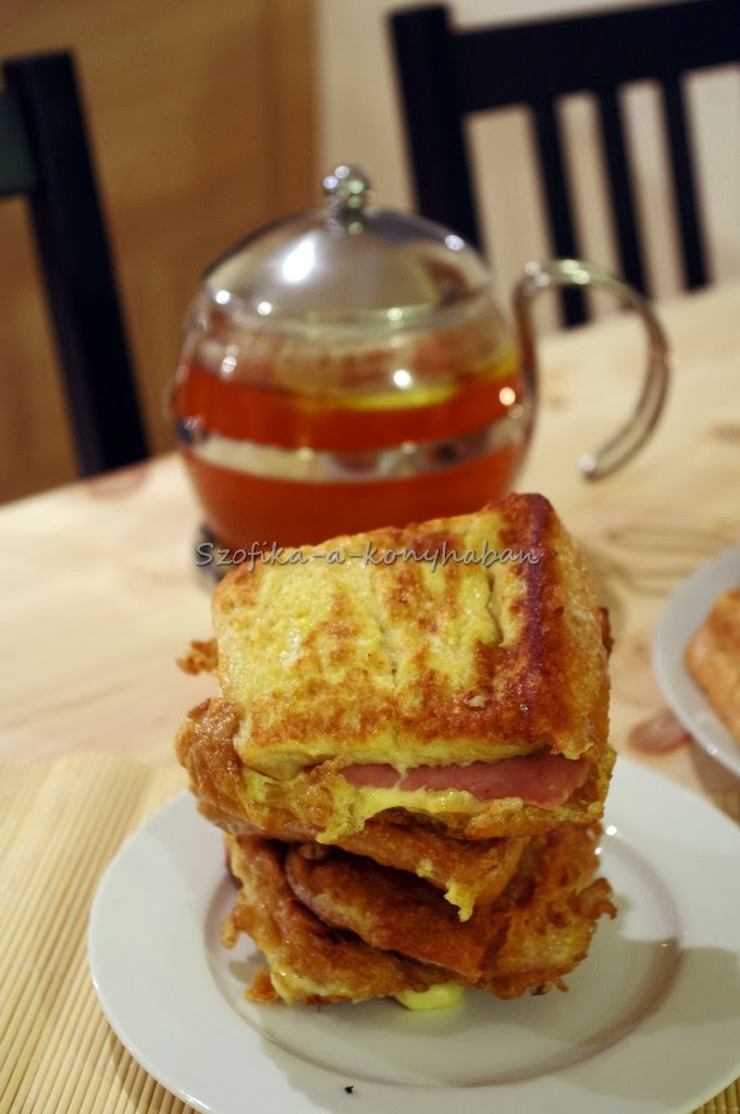 A ma esti vacsoránk bundás kenyérnek indult. Aztán az én drága Zém továbbfejlesztette az ötletet, kitalálta, hogy mi lenne, ha a két kedvencünket, a melegszendvicset és a bundáskenyeret ötvöznénk?Így lett belőle bundás szendvics és bitang jóóóó lett!!! Vacsorára, party-kajának/ másnaposság elűzésére, gyerekeknek reggelire, minden alkalomra ideális, mivel iszonyatosan laktató, mi 2 kis szeletet tudtunk megenni, így maradt későbbre / reggelire is! További előnye, hogy pikk-pakk elkészül, és a hozzávalók szerintem minden háztartásban megtalálhatók! Ha csak száraz kenyér van otthon, az is jó, de nálunk friss kenyérből készült, ami még jobban megszívta magát a tojással és még “szottyosabb” lett. Elmaradhatatlan velejárója egy kanna Earl grey tea, sok-sok friss citrommal, ne hagyjátok ki.:)
