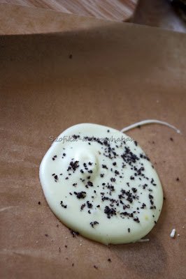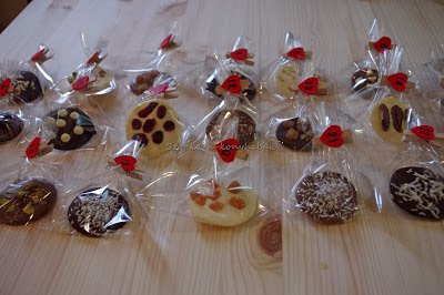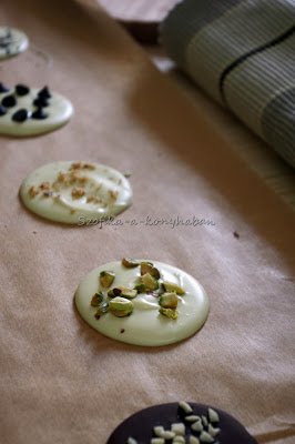 5. Ugyanezt ismételjük meg a tejcsokival és az étcsokival is majd várjunk türelmesen, míg a tallérok meg nem kötnek. Ekkor óvatosan fejtsük le őket a sütőpapírról és mehetnek a celofánba.