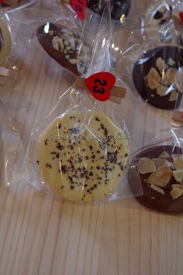 Na de vissza erre a kalendárra. Hetekkel ezelőtt kitaláltam, hogy csinálok ilyet, aztán Praliné Zsuzsi is pont ilyet posztolt a Díványon. Csak a fantáziánk szab határt a csokitallérok díszítésének, én most csupa olyan dolgot használtam, ami a szekrényben volt. Ergo még óriási beruházás sem kell hozzá. A végeredménnyel elégedett vagyok-a temperálás mind a 3 csokinál jól sikerült és a tegnap beszerzett számozott kis csipeszek azért feltették az i-re a pontot szerintem.:) Ha ilyen csipeszhez nem juttok, öntapadó kis számos matricákkal is meg lehet oldani.