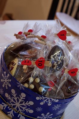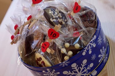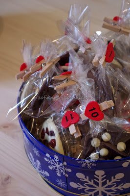 Még van pár nap december 1-ig, Ti is elkészíthetitek szeretteiteknek a csokikalendáriumot.Azért ez mennyivel barátibb csokikalendárium, mint ami gyerekkorunkban volt divat, nem?? Tudjátok, a havas téli tájjal ellátott kalendár, rajta a kis ablakok 1-24-ig és télapó meg fenyőfa alakú csokicskák. Én már általában 5-re elpusztítottam az egész dobozt, de az ablakokat visszacsuktam gondosan, nehogy Anyu meglássa, hogy felzabáltam a 3 heti csokiadagot pár nap alatt.
