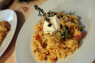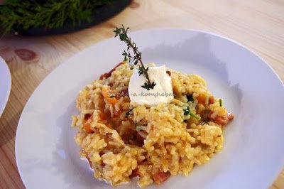Kedvenc ételem a munkahelyemen egyértelműen a sütőtökös rizotto. Sajnos nincs mindig az étlapon, csak a karácsonyi időszakban. Mikor tegnap felfedeztem az eredeti receptet, tudtam, hogy ma ez lesz az 1. advent vasárnapi ebéd. Mivel múlt hétvégén Z-nél jól vizsgázott a sütőtökkrémleves, tudtam, hogy nagyon ezzel se nyúlhatok mellé. Ez a recept tökéletes, látszólag egymáshoz totál nem illő elemek alkotják, mégis isteni finom. Advent időszakában vagy akár Karácsonyra, de feltétlen készítsétek el.