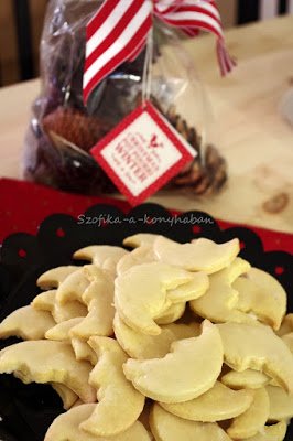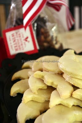 5. For the glaze sift the icing sugar into a bowl and add as much lemon juice as you need to get a thick glaze. Brush the cookies with the lemon glaze and let them dry. Put the cookies in a metal box and try to keep them for Christmas.:)