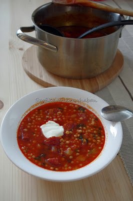 Tegnap főztem vacsorára ezt a levest, el is fogyott mind. Ma délelőtt kérdeztem Z-t, milyen leves legyen. A válasz: ugyanolyan, mint tegnap. Normál esetben kiakadtam volna ezen, hogy ugyanolyan levest főzzek, de mivel nekem is nagyon ízlett, nem tiltakoztam. Mennyiségek nem igazán vannak, az ilyen típusú leveseket általában érzésre készítem.:) Mivel az újévi fogadalmam a bloggal kapcsolatban az volt, hogy több leves és főétel lesz, próbálom nagyjából mérni a hozzávalókat a továbbiakban.