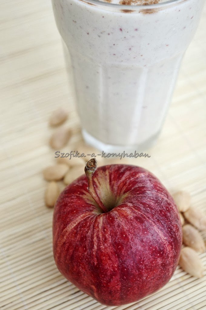 2. A turmixgépbe öntjük a tejet, a joghurtot, a banánt, az almát ( ebben a sorrendben, akkor könnyebb eldolgozni) és ízlés szerint a fahéjat. Kellő sűrűségűre turmixoljuk. Ha valakinek túl sűrű, vizet / jégkockát adhat hozzá.