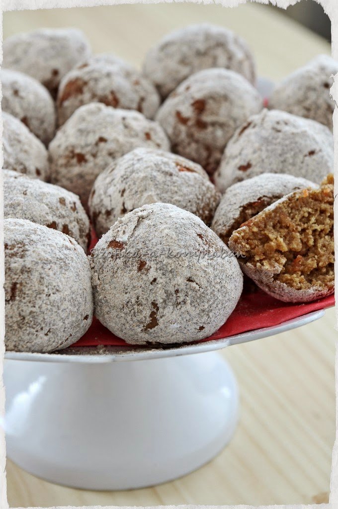 2. Kis golyókat ( 15-20 gr-os) gömbölygetünk, amiket aztán a fűszerekkel elkevert porcukorban meghempergetünk.