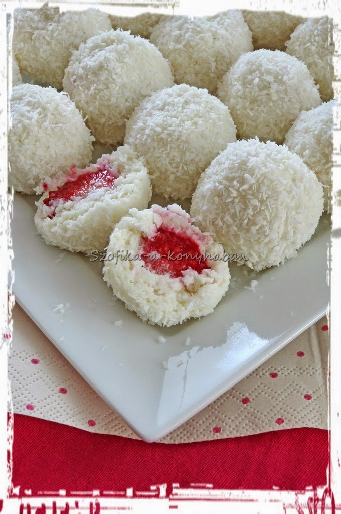 Azóta népszerű a kókuszos túrógolyó, hogy először kipróbáltam. Mogyoróval, mandulával a közepén a Raffaello-fíling erősödik. Most viszont megláttam, hogy Orsi továbbfejlesztette és epret nyomott a közepébe és hát kellett nekem is, azonnal. Isteni. Friss, finom, édes eperrel. Jajj de nagyon jó.