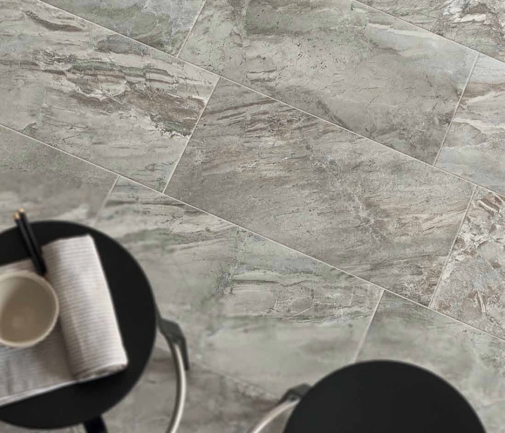 Ami az előszoba+konyha+ebédlő triót érinti, ebbe a lapba szerettünk bele, a Dom Ceramiche Karma Grey lapja. Kissé érdes felületű kőlap, fehérrel és fával kombinálva gondoltuk, hogy ez gyönyörű lenne.