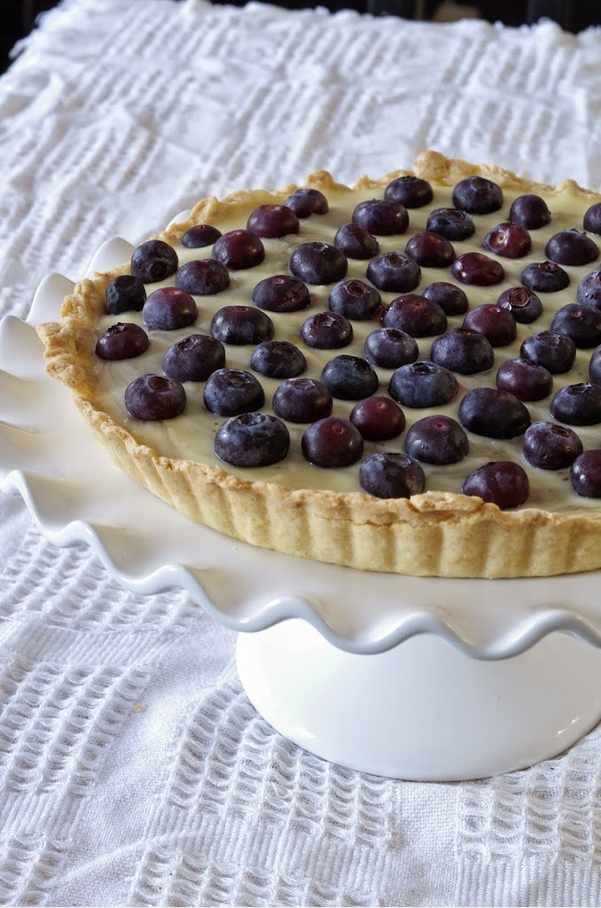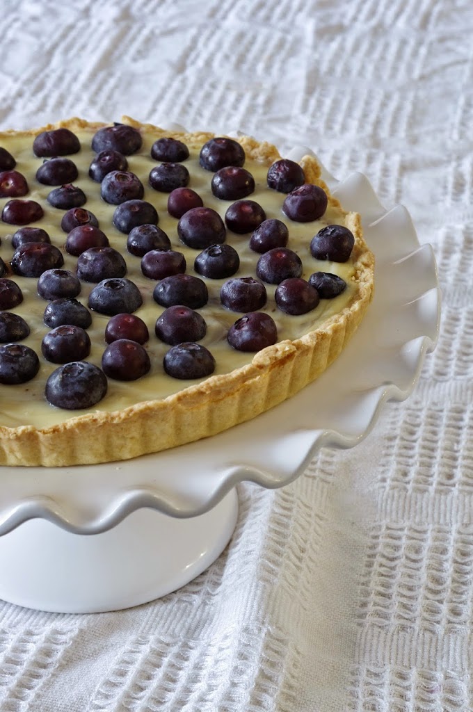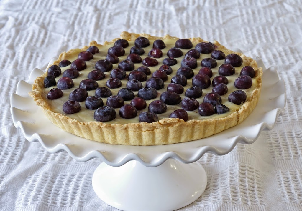 5. A kihűlt pitébe belesimítjuk a krémet, tetejét áfonyaszemekkel rakjuk ki és pár órára vagy egy éjszakára hűtőbe tesszük.