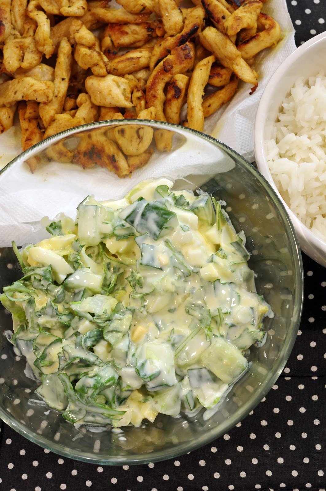 Rohanós hétköznapokon illetve mikor edzeni megyünk Zével, mindig csirkemell a vacsora. Mindig tartok a fagyasztóban 50-70 dekás adagokat szeletelve, így a kiolvasztást nem számítva, nettó félóra alatt el is készülök ezekkel a vacsikkal. A köretet illetően Zének nincsenek nagy igényei: sima rizs. Magamnak általában valamilyen salátát rittyentek hozzá, mutatom is kedvcsinálónak a mai menüt.