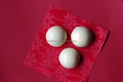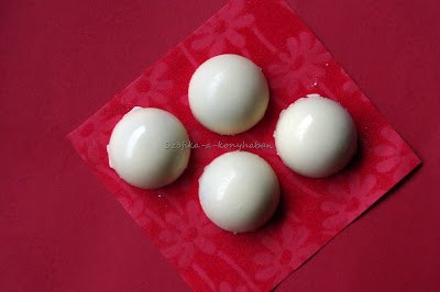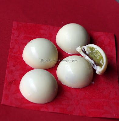 Mivel elég sűrű volt a csoki, vékonyítottam rajta kakaóvajjal, bár szerintem így is elég vastag lett a burok.De legalább szépen kipattantak. Szóval haladok-haladok,jaaaa, mielőtt elfelejteném, az íze naggggyon jó:))