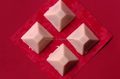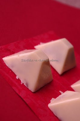 4. A fehércsokit újra temperálom, lezárom a bonbonokat és további kb. 1 órára hűtőbe teszem.