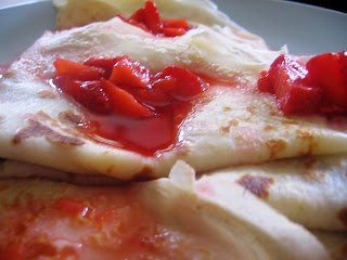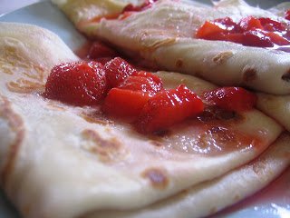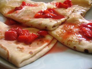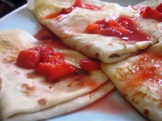 5.A palacsintákat megtöltjük a pudinggal és tetszőlegesen feltekerjük/ összehajtjuk. Az elkészült palikat az eperszósszal leöntve tálaljuk.